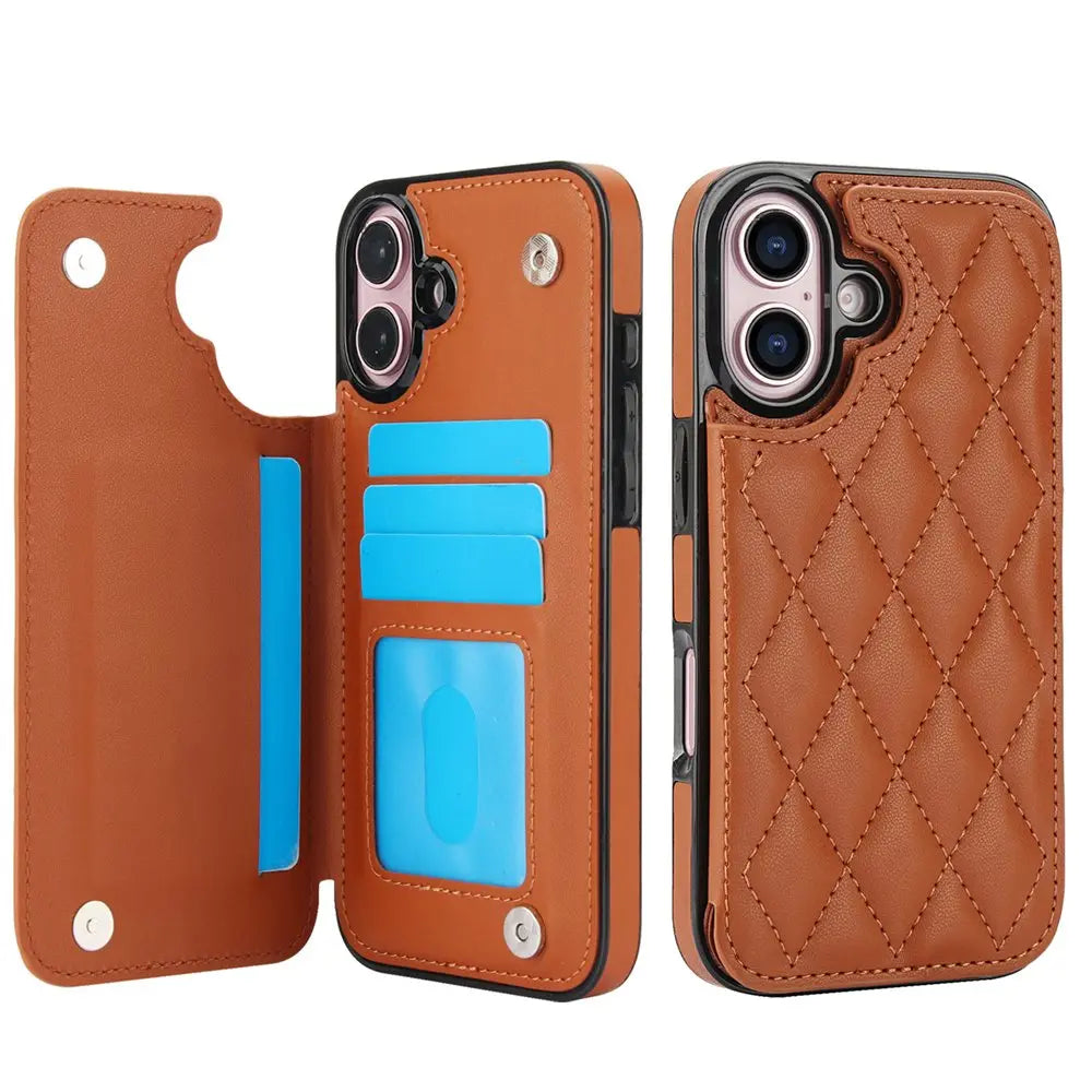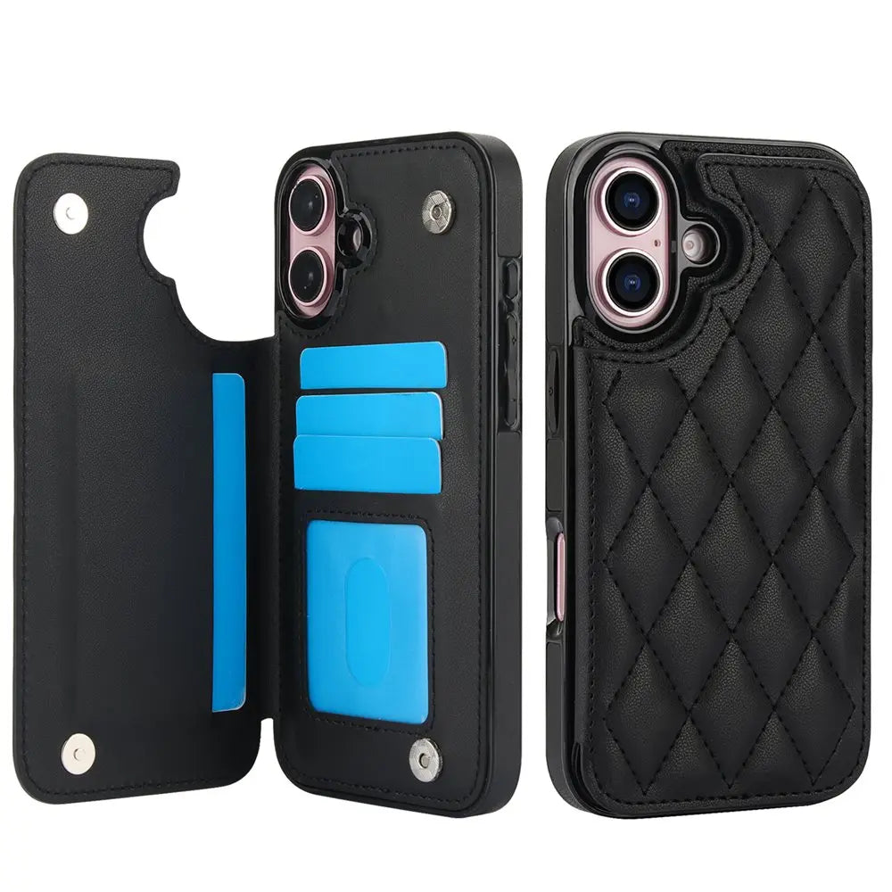 New RFID Blocking Card Holder Leather Phone Case for iPhone 16/16e/16 Pro/16 Plus/16 Pro Max