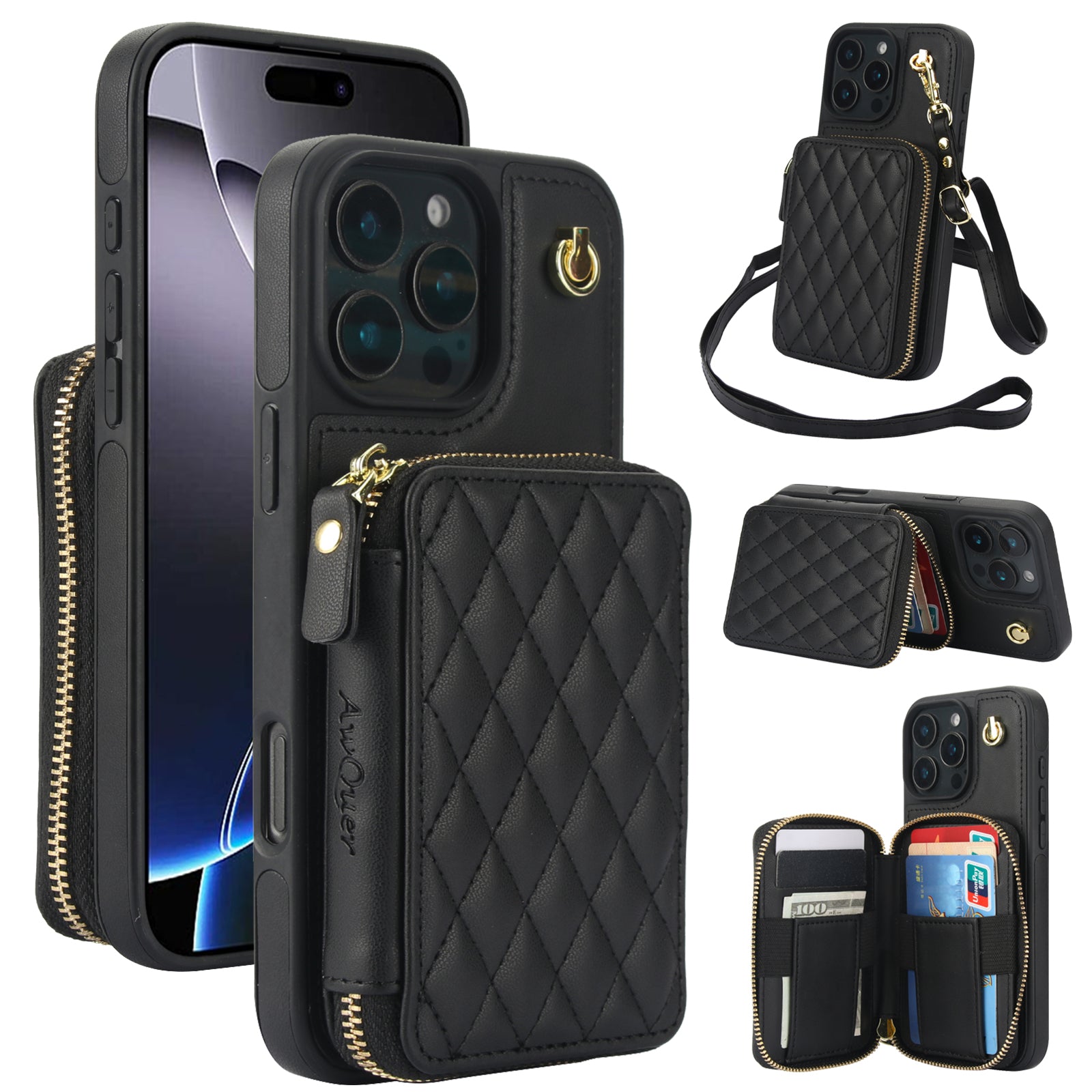 New RFID Blocking Crossbody Zipper Wallet Leather Phone Case for iPhone 16/16e/16 Pro/16 Plus/16 Pro Max