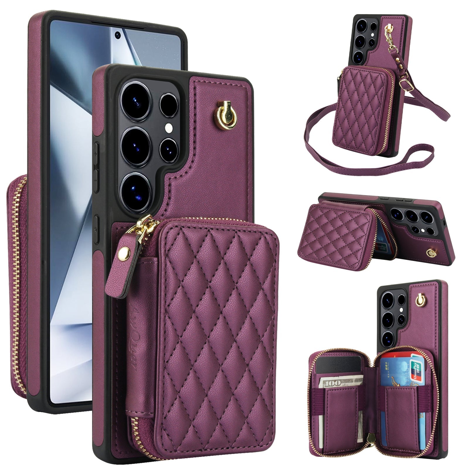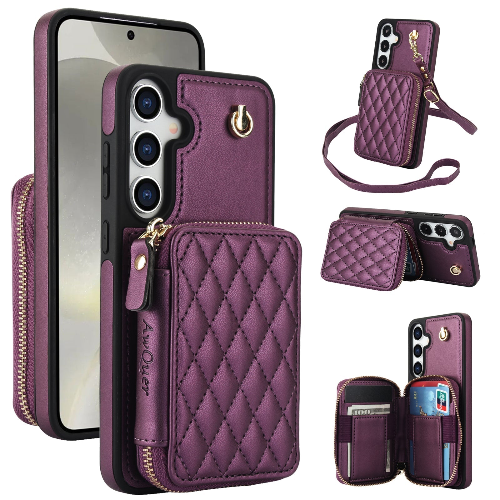 New RFID Blocking Crossbody Zipper Wallet Leather Phone Case for Samsung